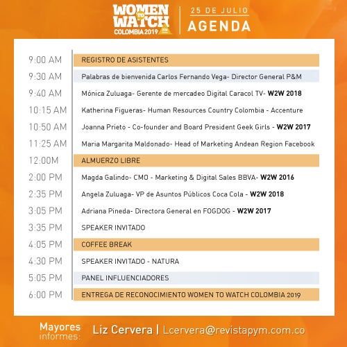 Al cierre de la jornada académica, se llevará a cabo la entrega de reconocimiento a las Women to Watch Colombia 2019.