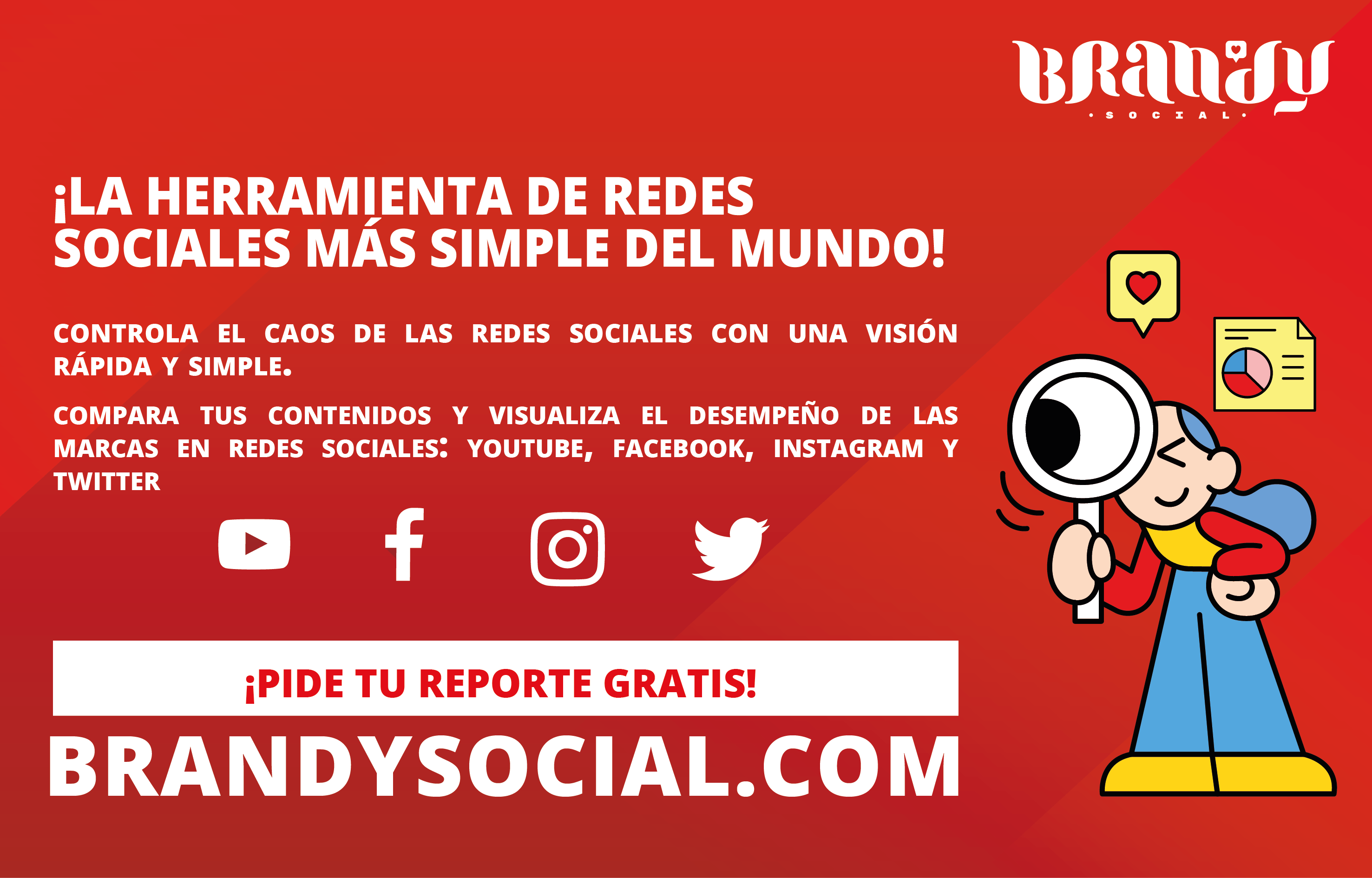 Brandy Social ahorra mucho tiempo en medir el desempeño frente a los competidores e industria en contenidos de redes sociales. Permite acceder a las publicaciones en Facebook, Instagram, YouTube y Twitter en una simple vista. Visualizar el contenido patrocinado (Branded Content) que están desarrollando las marcas en medios o con influenciadores. Y mejor aún, envía los insights directamente al correo sin la necesidad de depender de un tercero.