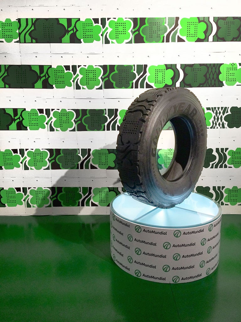 Arutza y Andrés propusieron hacer una llanta con un diseño de banda único (inspirado en la virgen del Carmen, ícono de los transportadores colombianos) para ser usado como rodillo de impresión.