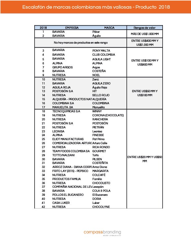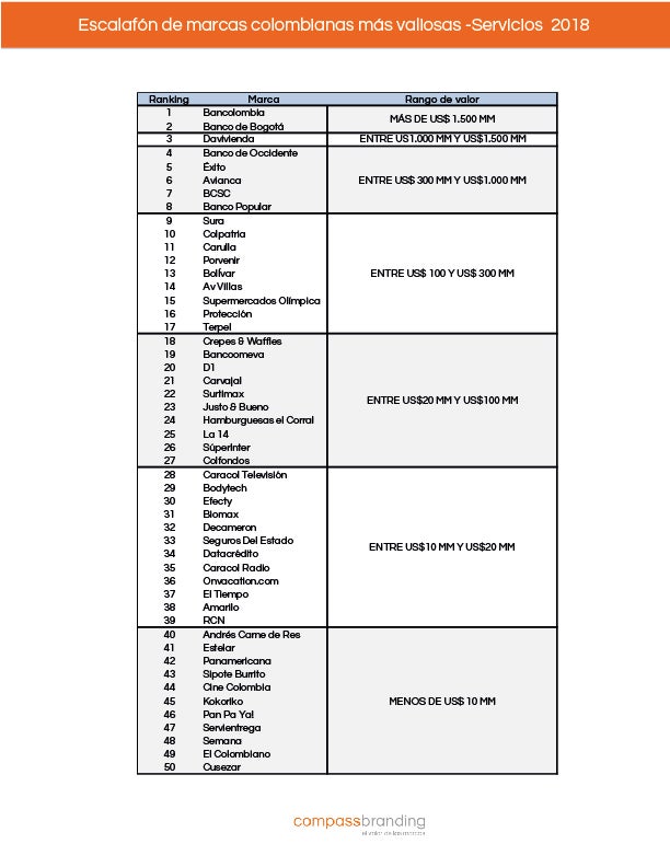 A continuación el ranking de las marcas colombianas de productos más valiosas: