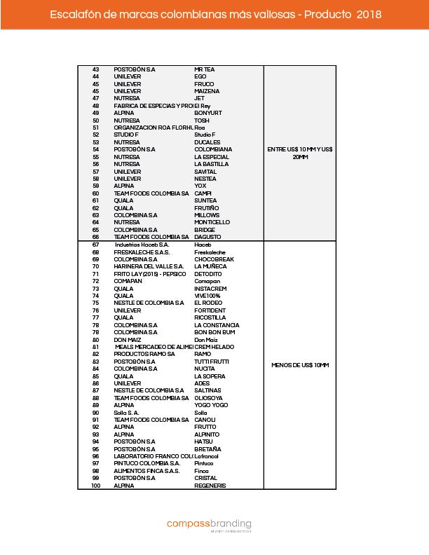 ‘Las marcas colombianas más valiosas’ es una investigación que busca «despertar la consciencia sobre la importancia de estos activos intangibles en la generación de valor, pues no aparecen en los estados financieros». Esta es la primera vez, en 17 ediciones, que se presenta un listado de los portafolios más valiosos. Es decir, no solo a las marcas individuales, sino a los conjuntos de marcas colombianas de productos que tiene una empresa.
