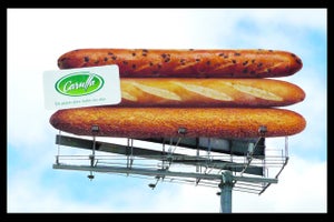 Una apetitosa valla publicitaria que en 2008 funcionó para antojar a los transeúntes y conductores, de los baguettes de la cadena de supermercados Carulla.