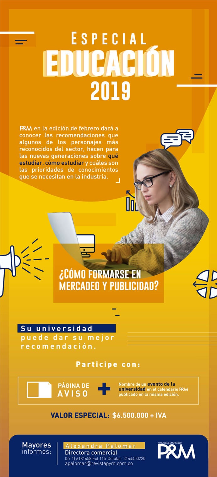 Haga parte de este especial comunicándose con Alexandra Palomar al CEL: 3144450220 o al correo apalomar@revistapym.com.co