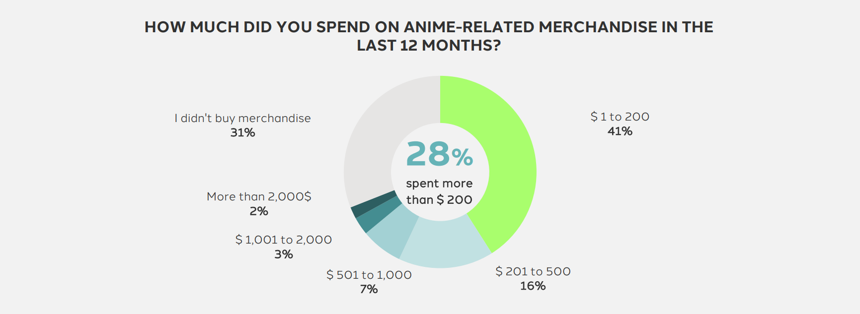 “Los datos demuestran que la audiencia anime puede ser un potenciador económico para cualquier compañía ya que, El 28% ha gastado más de USD$200 al año, y 1 de cada 10 supera los USD$500 (...) De hecho, el 43% de los consumidores dice que mejora su percepción de una marca si esta incorpora propiedad intelectual de anime en productos o promociones”, agrega Triana.