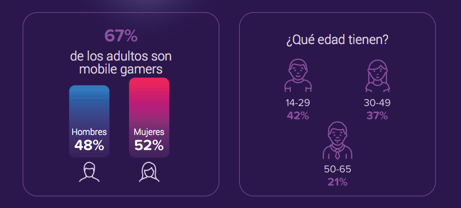 Otro dato que revela el panorama, es que el 67% de adultos en Colombia pasan tiempo jugando en sus dispositivos móviles. En ese orden de ideas, las razones por las cuales consumen juegos son entretenimiento 64%, relajación 58% y sensación de libertad 51%. Y en cuanto a actividades que los jugadores hacen mientras utilizan las aplicaciones de juegos se encontró que escuchan música, miran televisión, navegan en redes sociales y ven series.