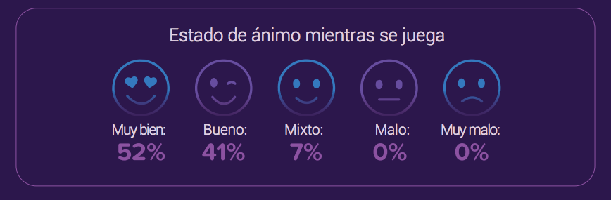 El estudio reveló que, la periodicidad y cantidad de veces que se accede al dispositivo móvil para jugar han aumentado. El 42% de los encuestados juega entre cuatro y cinco veces al día y el 29% juega más de diez horas por semana. Por otra parte, el 33% tiene al menos tres juegos diferentes.