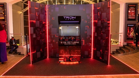 Uno de los grandes atractivos fue la máquina de arcade inspirada en el videojuego original de TRON (1982), que permitió a los asistentes volver al punto de origen de la saga: la interacción entre el jugador y la máquina. Esta fusión entre nostalgia y vanguardia fue el hilo conductor del evento, que rindió homenaje a la historia de una franquicia que lleva más de cuatro décadas explorando el futuro.