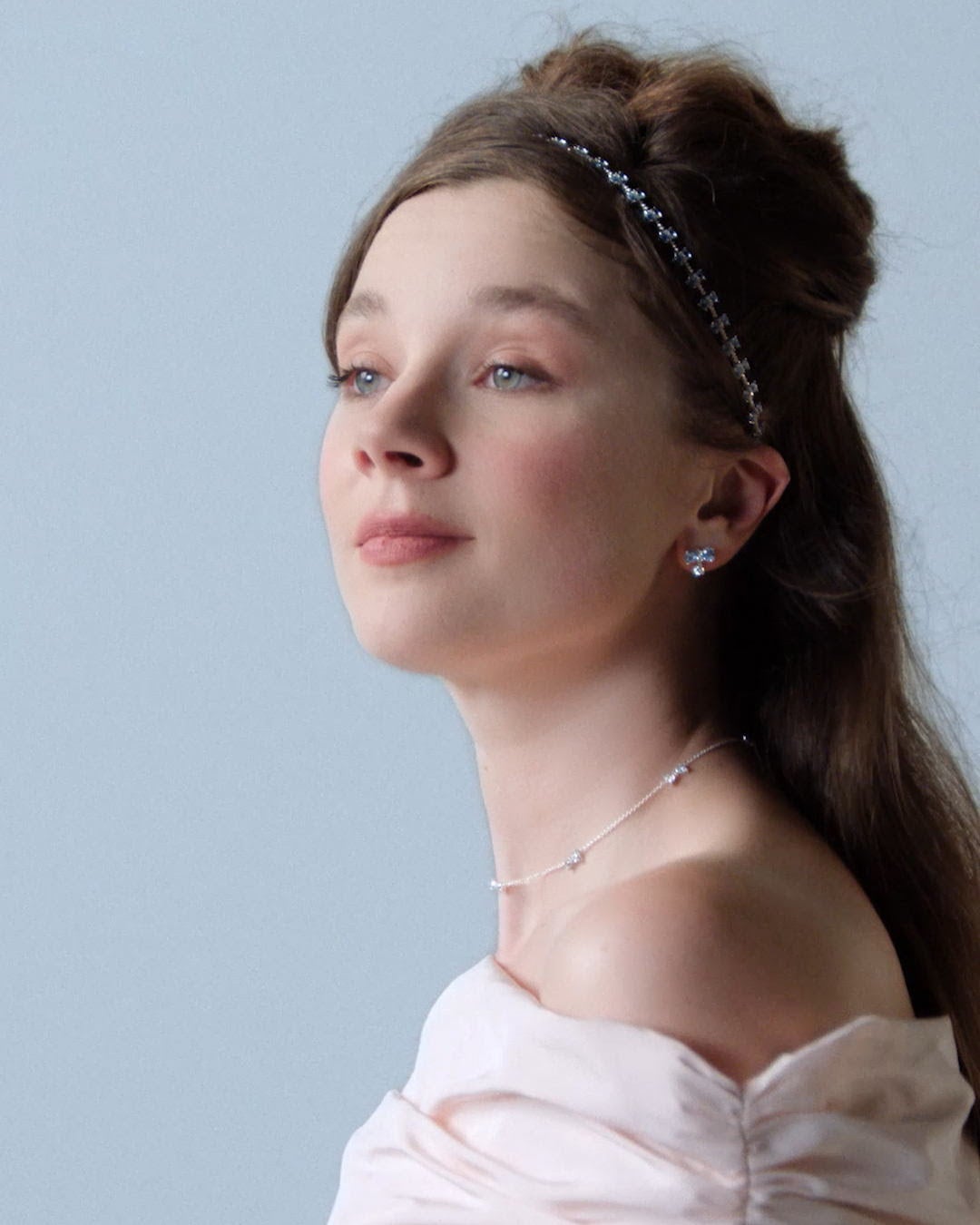 El simbolismo ocupa un lugar central en esta colección, destacando la abeja como ícono de renovación y trabajo en comunidad. Este elemento, profundamente ligado a la narrativa de la familia Bridgerton, se reinventa en anillos con pétalos perlados y chokers con borlas. Otros detalles, como un charm en forma de bolsita de té con gemas incrustadas, funcionan como guiños directos al estilo de Lady Whistledown, conectando emocionalmente con la audiencia que valora las referencias sutiles y los mensajes ocultos en sus accesorios.