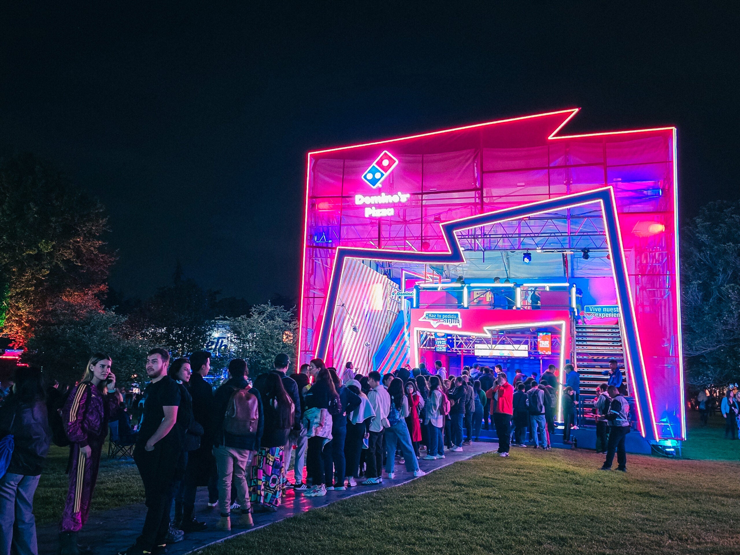 El stand de Domino´s, creado junto a Tracy Locke, tenía dos pisos. En el primero, las personas podrían pedir su pizza a un gran precio, seis pedazos por 20.00 pesos (un costo que no ofrece ninguna otra marca de comidas en el festival), y reclamarla sin hacer filas en la zona de comidas. En el segundo piso las personas hacían dos actividades; primero, se enfrentan a otro de los asistentes para crear la pizza más completa en un espacio similar al de Overcooked, el juego de Play Station, y quien tuviera más ingredientes acertados ganaba merch exclusivo de la marca para el FEP como fichas de dominó que eran cojines impermeables y suavecitos para sentarse, impermeables (los probamos y sí funcionan) y tote bags. La segunda parte de la experiencia consistía en deslizarse por un rodadero y caer en una piscina de pelotas con el adicional de recibir un video en cámara lenta de la rodada.