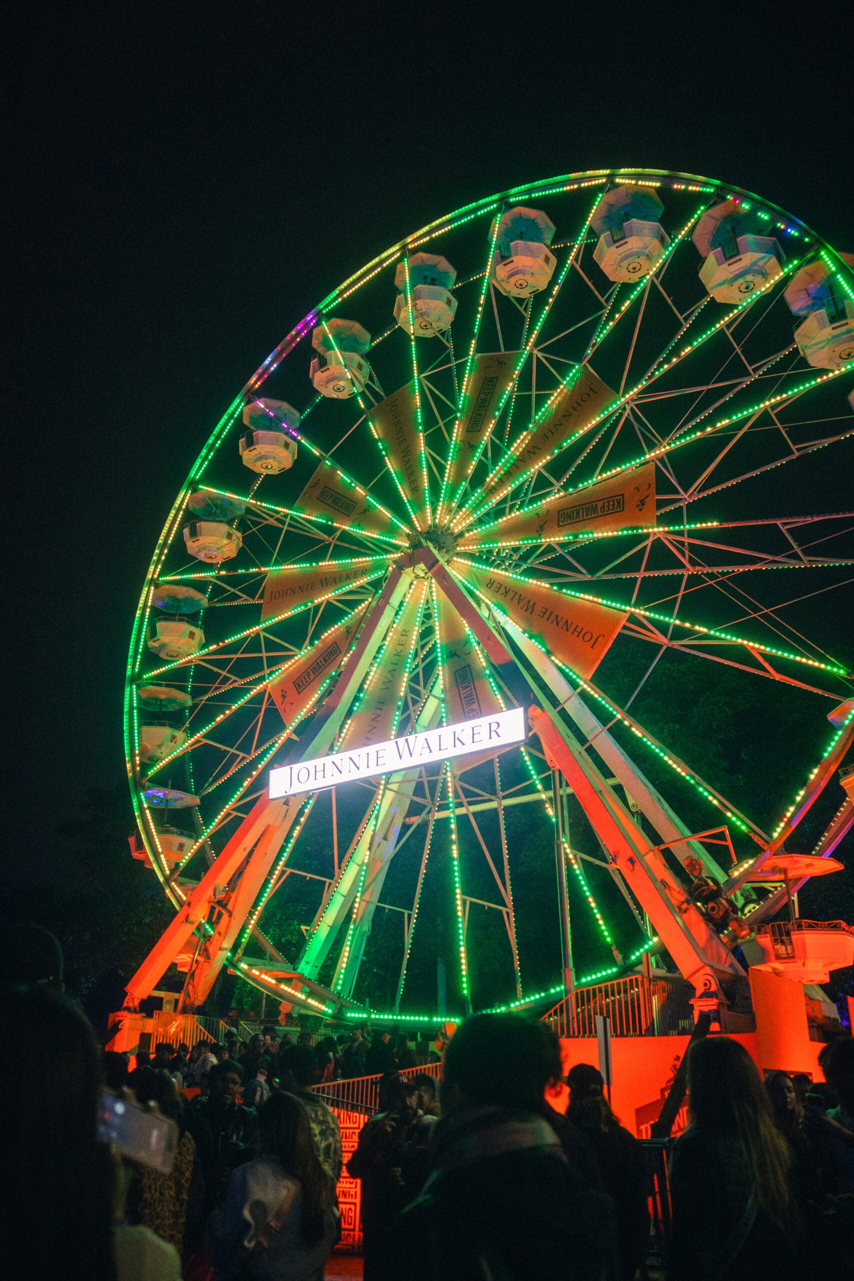 De día, se veía hermosa, pero su verdadero momento icónico fue de noche: cada pedazo de se iluminaba con luces led que iban cambiando de color como las de los árboles de navidad. El detalle de marca estaba en el centro de la rueda: Un enorme letrero que decía Johnnie Walker la marca que, para celebrar su décimo aniversario como patrocinadora del festival, botó la casa por la ventana ya que no solo se apropió de esta activación, sino que tuvo el escenario principal, gran parte de las zonas VIP y una de las suites más grandes del festival.