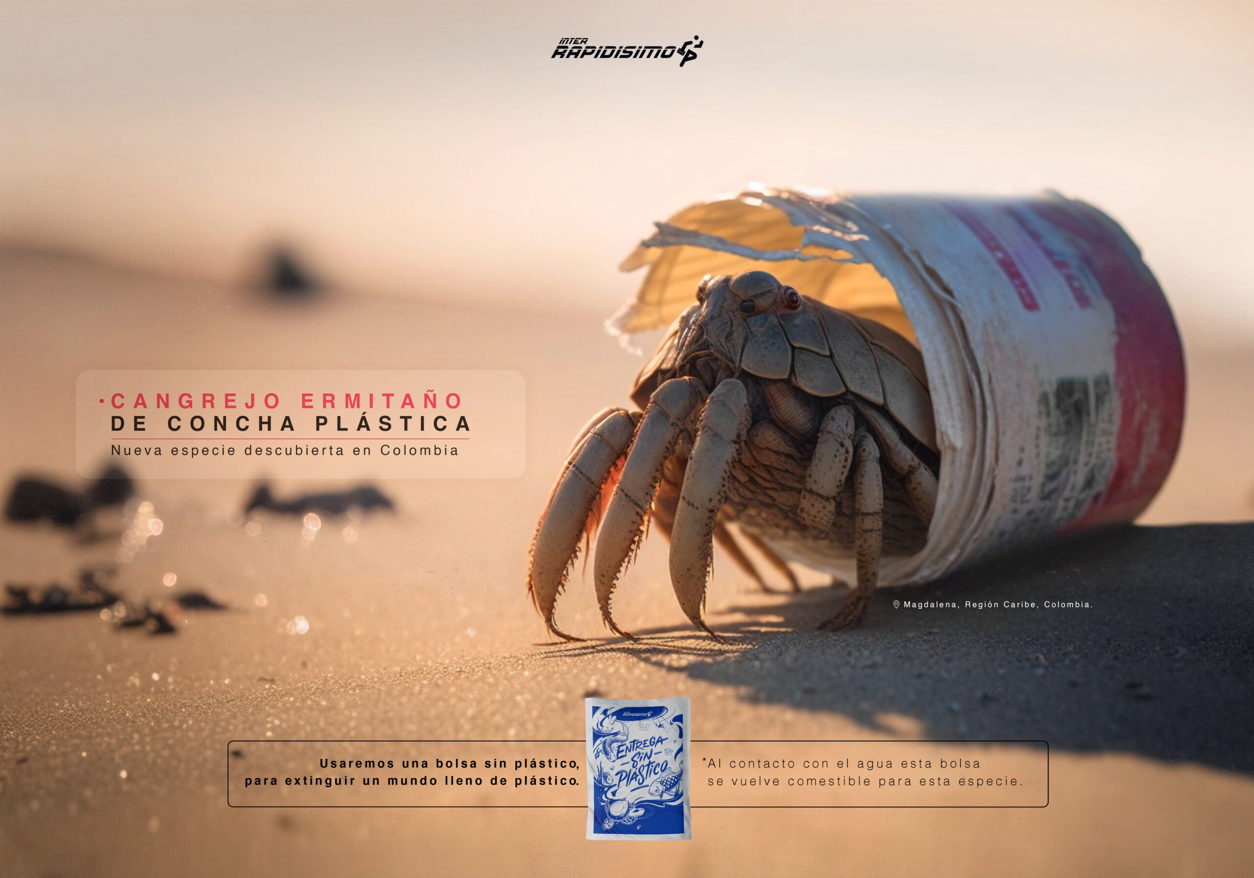 En su nueva campaña Inter Rapidisimo hace evidente cómo la contaminación plástica ha cambiado la naturaleza de nuestro país. Los bosques ahora conviven con bolsas, tarros y tapas plásticas, y nuestras aguas albergan islas de desechos plásticos. Sin embargo, lo más triste es que las especies que solían habitar estos ecosistemas han empezado a transformarse, ahora son animales que se vieron forzados a aprender a vivir con plástico en sus ambientes y en sus cuerpos.
