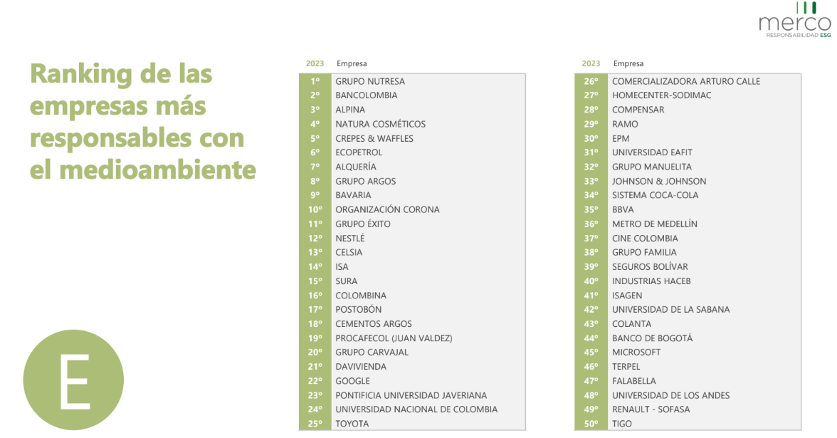 El 29 de febrero de 2024 se presentaron, a través de un webinar, los resultados de la treceava edición del estudio de Merco Responsabilidad ESG Colombia 2023, el estudio que integra las valoraciones de diferentes fuentes de información respecto al compromiso de las empresas colombianas en torno al medio ambiente y cambio climático, además de la responsabilidad con los empleados, contribución con el país y el compromiso social, asimismo evalúa su comportamiento ético y de gobierno corporativo, entre otros.