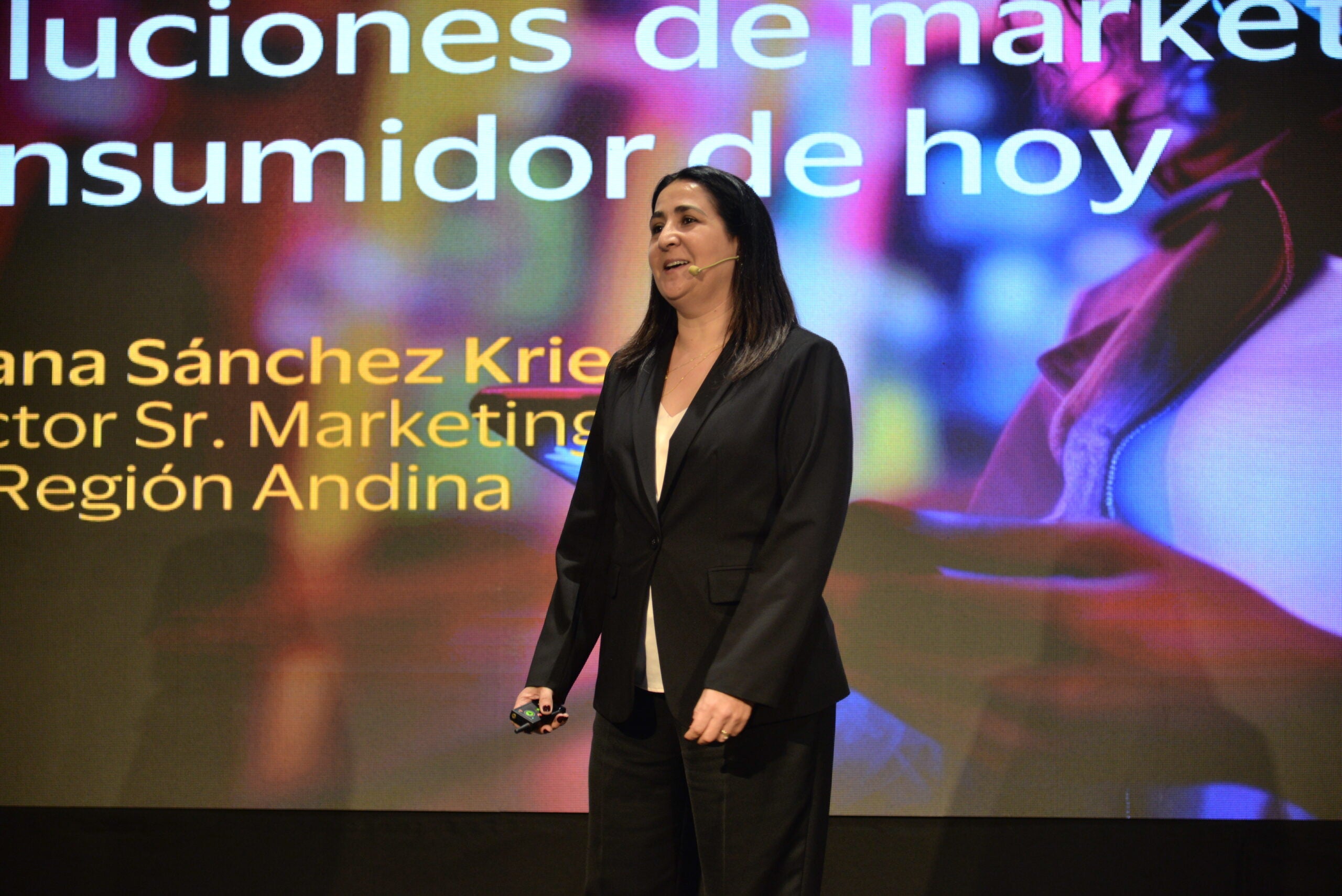 Adriana Sánchez Krieger, Head of Marketing Región Andina de Visa presentó la conferencia Soluciones de Marketing para el consumidor de hoy. Se centró en explicar cómo una marca, cualquiera, puede conectar con Visa csin importar su categoría. y enfatizó que la banca debe aliarse con marcas de entretenimiento para lograr hablarle a las personas de forma directa y crear experiencias memorables.