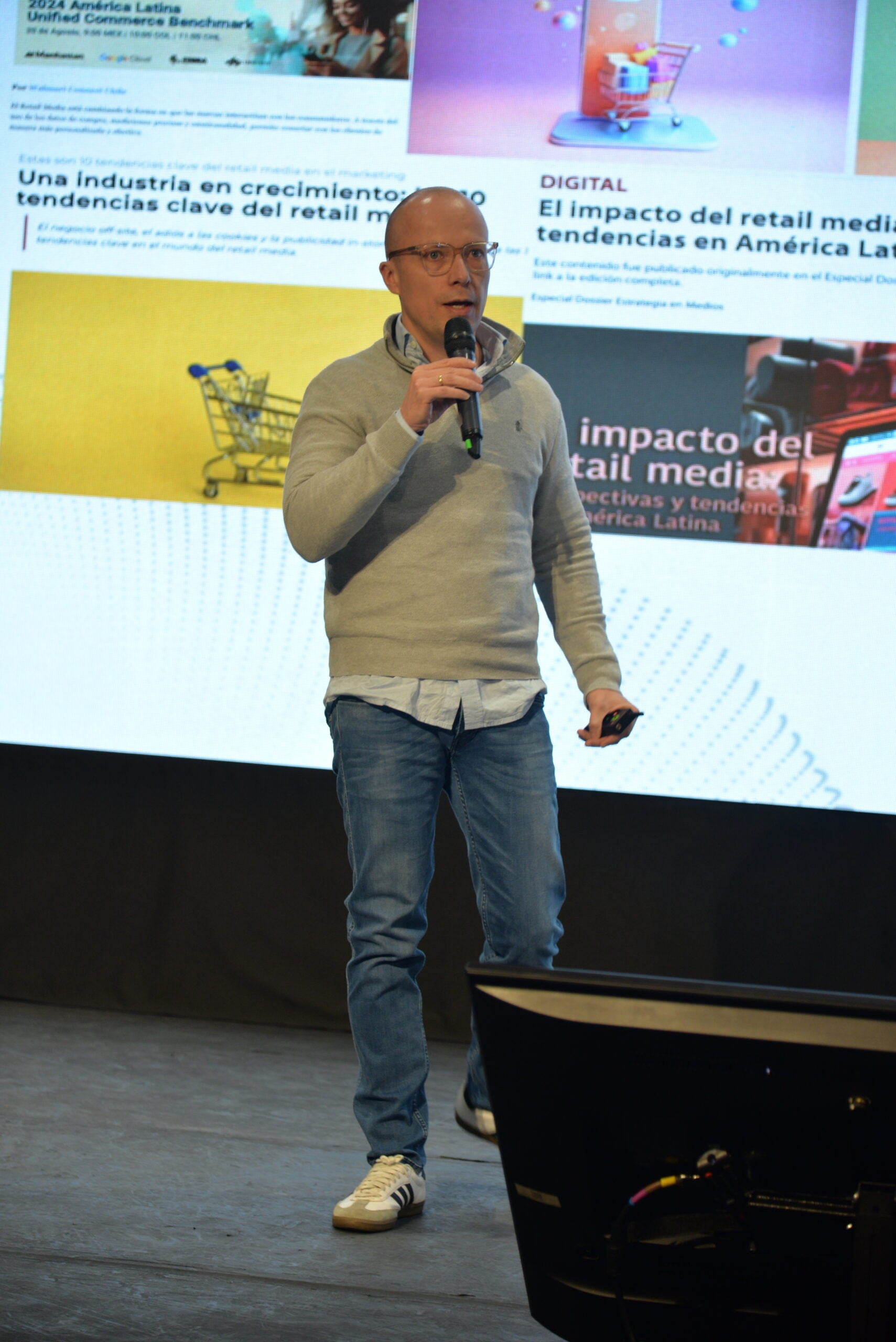 Carlos Fernando Vega, director general de P&M, dio inicio a la jornada del primer día con un llamado a actualizarse e innovar, y mencionó que el MC Latam es un evento qIue crece y evoluciona cada año. Así mismo, recordó que en 2024 P&M cumple 45 años, un hito para un medio que nació siendo impreso y que en la actualidad cuenta con diferentes canales como redes sociales, una página web, y más de ocho eventos al año.