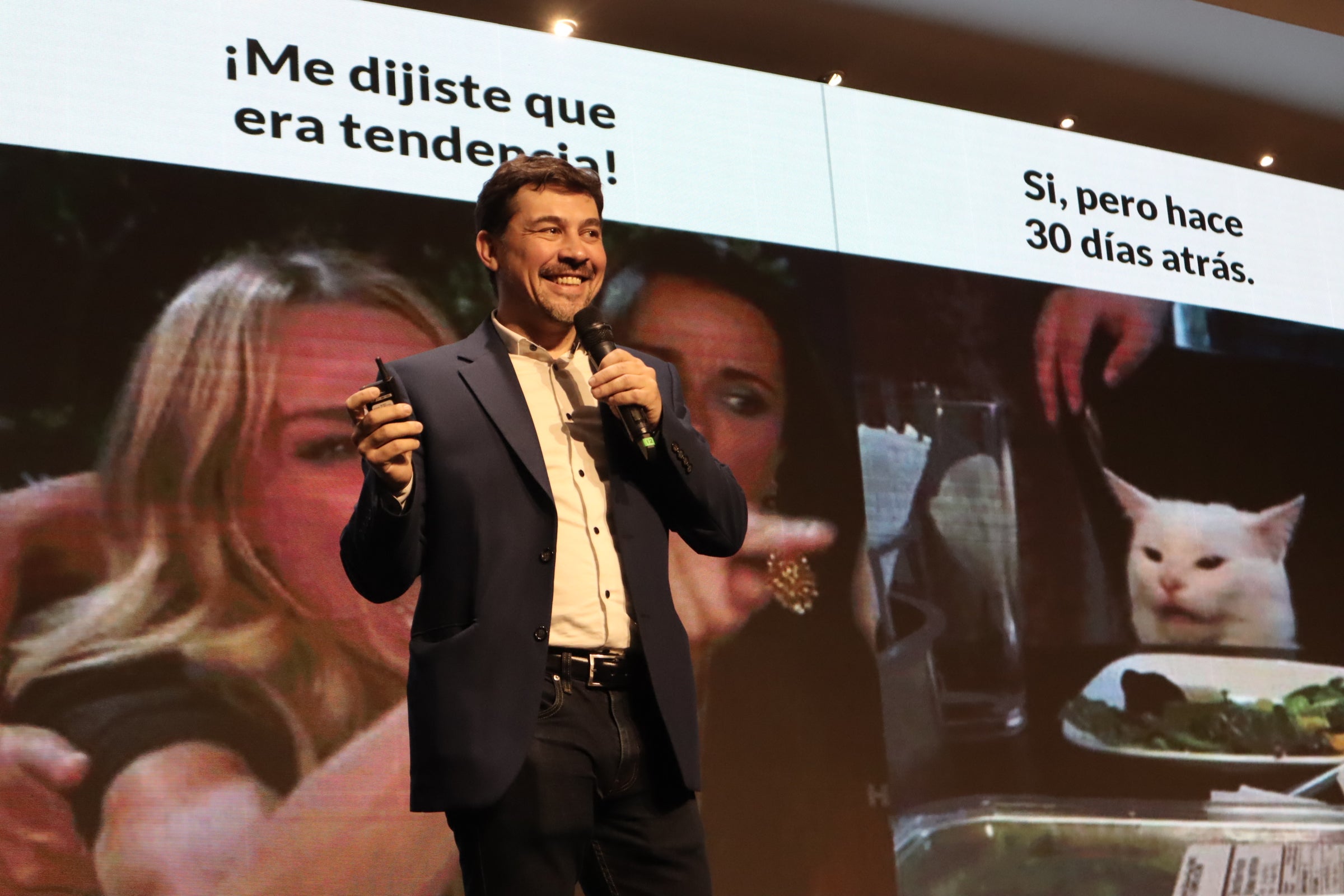 Hernán López, CEO de Mr. Branding, dio la conferencia Hay que ser oportuno, no oportunista. El tema central de su charla fue explicar cómo ser más eficiente y crear mejor retorno con las experiencias de marca gracias al entendimiento del propósito de la marca. López destacó que es necesario optimizar cada proceso del funnel de mercadeo, pensando en marca y enfrentar el branding como la generación de equity en el negocio.